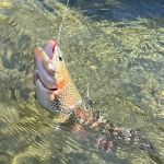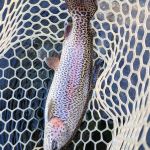 When they got to the river the trout were rising in the film layer, so they decided to swing tiny flies first. Swinging flies requires a little finesse to set the hook as Ken found out. He had several hits but couldn’t quite get a hook up. Kenny then put him on to stripping woolybuggers. It seemed that the olive buggers did the best as Ken put several trout into the net. Most reported back that olive was the best color buggers for them too. After about 30 minutes of stripping (buggers that is) we went to nymphing and did well on zebra midges. After about four fish in the net and several near misses Ken and Kenny returned to the Stag tables for lunch.