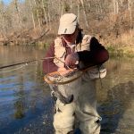 Ken Roettger was next for the 2022 Fall FATC fly fishing class to “test” the skills he learned in class. Scott Payne, Jim Craig, Dominic Flores (one of our newest members), Chris Wiley, Steve Baker, Bob Hassett, and Bob Palisch joined Kenny for Ken’s graduation. As always everyone wished Ken “good luck” as Kenny took him to the boulder area at Montauk – questioning him all the way to the water. Hey, it is graduation time, and everyone is evaluated during this last class on the water. The two talked about what you do before a trip, during the trip and approaching the water before stepping in the frigid river.