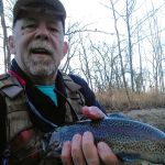 away. He used crackle backs, green perdigon, San Juan worms and midges throughout the day. Myself,