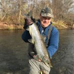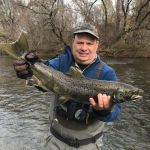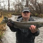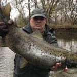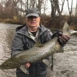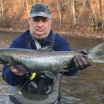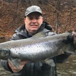 It’s challenging putting in the effort of traveling to remote regions, constantly moving from stream to stream and access to access looking for fish, but it is very gratifying hooking up with a few of those magnificent Great Lake Run Trout and Salmon. This year I landed my personal best Atlantic Salmon. I feel fortunate to have my longtime fishing partner Mike, who stays dialed into the local fishing.
