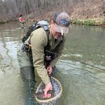 So, the main event was graduating both Tom Watson and Christopher Beahm. Kenny and Jim Craig took over the chores of instructing and the “others” that made it just went out and fished. Kenny and Jim took both Tom and Christopher to the usual area above the dam to cast, strip, swing, and dead drift. Jim said that Christopher caught a trout on his second cast – he was worried that would be bad luck for the rest of the day. But it was not. Tom had to wait until after lunch before he would bag his first trout.