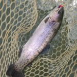At lunch we got to talk strategy with the rest of the gang. It was nice to get a visit from Brett “Gabby” Heath, who was camping for a week at Montauk with his family. As we planned for the afternoon Brain and Kenny decided to fish at the top of the park and work our way down to the end of the fly only area. Brain pulled in a few more trout using dead drift techniques. And even Kenny got to fish a little too! Jim Craig had an impressive afternoon with some twenty fish in the net, but he was using the “dreaded” cerise worm. Ok, ok, the water was cloudy so go big and gaudy – I get it! Ken Welter and Sterling Short both did well in the afternoon too. Some of the hot flies were the red midge, cerise worm, copper john, crackleback, Barr’s emerger and perdigons.