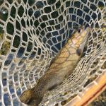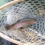 We would each go for a while without any action, then find a pocket and pull out 4 or 5. At the end of the day, we each had 15 or 16 in the net. It was a great day. The most successful flies were perdigons (green or black/red), black zebra midge, and soft hackle. (Ken caught a few with a couple of dry flies.)
