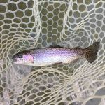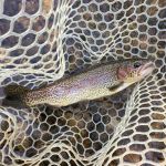 Thursday evening September 20th and Friday morning September 21st.  We still have the humidity here in Missouri and a few rain showers kept things damp.  The water is very clear and low but the stream has a lot of leery fish in it.  Fish were caught on San Juan worms (light colors), white midges and pheasant tail nymphs Thursday evening.  I hoped to fish with a soft hackle fly Friday morning but it poured and the fish didn’t want that fly.  I switched to a bead head pheasant tail nymph with a worm dropper and the bite was on.  During the rain the fish took both flies whether fished in slow or fast water.  By mid morning the rain moved on but the humidity hung around just to keep things sticky.  It was a quick trip but the fishing was productive.  Make sure you get out in the next few weeks as the catch and keep season comes to an end.