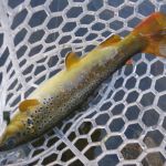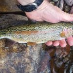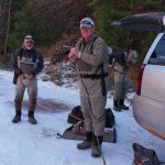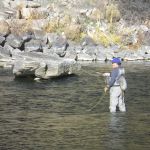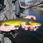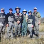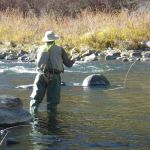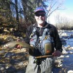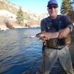 Our final “out of state” trip this year has been completed. We headed to Colorado for the third time this year. But this time we fished the I-70 corridor of rivers. Jim Craig and Kenny Klimes joined up with Ron Fiala (from Chicago) in Denver on Saturday and drove over the mountains to Beaver Creek. We were greeted with a snow storm and freezing temperatures as we pulled into our luxurious headquarters for the week. We met up with Greg Krochta (lead of the Denver fellowship) on Sunday to fish the Eagle river just outside of Beaver Creek. We hit a different spot each day which made the trip interesting and a little tougher. The majority of rivers we fished had many rocks and boulders making it difficult to wade and slippery! Most of us had a time or two in the drink – so to say. On Monday we hit the famous Frying Pan river and caught some of the most beautiful brown trout I have ever seen. The upper portion of the “pan” has mysis shrimp which give the fish their brilliant colors. Tuesday we fished the Colorado river near the “pump house” and met up with our other guest Mark Terry, another member of the Denver fellowship. Wednesday found us back on the Eagle river but in different location than Sunday. Tim Graham (yes, our own St Louis Tim who moved to Colorado) joined us on Wednesday and we had everyone together – all six of us for at least one day. Thursday was another long drive up to the Aspen area to fish the Roaring Fork river, another rocky river bottom which was at times tough to walk. Greg took us to a beautiful spot where we were the only ones fishing the river. Our last stop on Friday was the Middle Fork of the South Platte in the Tomahawk SWA. This was a relief for us since this meandering stream had very few rocks and boulders to make us slip and slide.