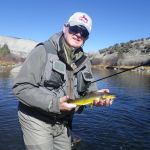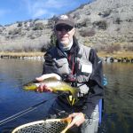 It was an awesome trip with many beautiful trout caught (and yes, one huge, mountain whitefish by Tim – which is in the trout family!!). We used an eclectic group of flies from nymphs, soft hackles, san juan worms, egg/bead patterns to dries. Greg schooled us in Czech nymphing and did very well using his heavy nymph patterns. In the middle of the week the fishing got tough as a cold front moved through – even the fly shops said that the guides were finding the fishing difficult. But we managed to catch fish each day – but we had to work hard for them.