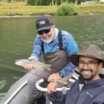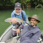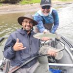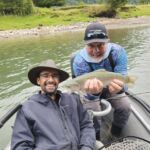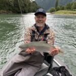 We started our trip with a little bit of wading in a smaller runoff and caught several small brown trout. I think this was a “test” by Rodrigo to see if we could “walk the talk”. We passed without a word being said and then into the raft to fish downstream. Now the true fishing started as we had to pitch our flies under trees and into deep holes. The fish suddenly got bigger and the laughter and howling (and bragging) got louder. We caught around five very nice sized rainbow trout among others and lost some even bigger ones. I am not sure who had the biggest fish since Jim and I had at least one each over 20 inches. Unfortunately for us this trip was only a four-hour fishing trip, but it was worth it.