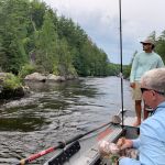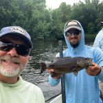 The next day we picked a fresh guide, Gabe, and the fishing was the same. Fishing was slow with about seven fish a piece for Ron and me. We again used a lot of different flies to find the right combination – big streamers, small streamers, black, green, yellow poppers – nothing seemed to work consistently. It was a bluebird day and with the sun out most of the time we figured the bass just wanted to “hang out.”