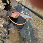 On the Kenai peninsula, our fishing guide took us down the upper Kenai river down to the Russian river on a float boat. We caught Dolly Varden Trout in the 20” to 22” range (I was fly casting a streamer and my wife was dropping a plug down the stream with a spin reel). This is quite a large river with strong currents. Our guide worked hard with the oars to get us in some great places.