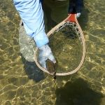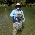 Late that morning we met another fly fisherman and asked how he was doing. He told us he had been there all week and the fishing had been very slow. He said the trout had been very finicky and the only thing he had any success with was with a fly that looked like a large egg and said it was called “The Blob”. It looked like it was made of McFlyfoam in the colors of the Clown Package. He was just letting it lie on the bottom and then waited for a fish to investigate and then they were taking it. Sounded kind of odd, but he was certainly having more success than the two of us as we were. He was relatively new to fly fishing, so Bill and I told him about FATC and each gave him a few terrestrial flies, bid him success, and then broke for lunch.