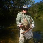 On Thursday August 29th, Bill Byington and Martin Jones headed down to Montauk State Park for a day of fishing. It was a beautiful end of summer day with lots of white puffy clouds in the sky, little humidity, and temps reaching about 85 in the afternoon. When we started making our way down to the river we noticed masses of Trico hatches occurring all around us. The excitement of a potential big day quickened our step. We decided to start our day up at the spring and work our way down. As we had hoped, we found the Trico hatch on the water as well. Bill decided to rig up a Griffith’s Gnat and get things started. I thought I’d try sub-surface with a Zebra Midge. We saw a few rises, but not that many. It sure seemed like we were poised for a big morning, but as we all know the trout can often have different ideas. Seems like this day the trout were interested in investigating our flies, but at the last second would turn their head and refuse our offering. We tried several different flies throughout the morning with pretty much the same result. The water was clear and we could see trout all around us, but we could not get them to consume our presented flies. We could almost hear the trout whispering “you boys are going to have to do a lot better if you want us to take what you’re offering”.