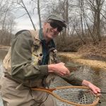 John Wienstroer is the ninth graduate from the 2022 Fall FATC fly fishing class. Like I said before this class is becoming the “best class ever”. John and Kenny headed to an open spot just downstream from the boulder in Montauk to cast and practice several techniques – stripping streamers, swinging smaller flies, dead drifting and high sticking. John did well and missed a few trout but mostly the trout seemed like they didn’t want to participate as usual. After about a couple of hours of practicing, we headed back for lunch to see how the others did in the morning. As always, some guys did well in the morning but others struggled. Of course we were all fishing throughout the park in different locations. A recent rain had the waters slightly cloudy and a little higher than normal. But the afternoon seemed to turn on for many.