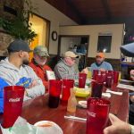 We stopped fishing at the siren (4pm) gathered at the parking lot and picked a place to eat. Wanting to eat early and before the Saturday night crowds rolled in we headed to Salem to have Mexican food. Arriving at 5pm, the Arandas’ restaurant accommodated us by pushing four tables together. What a great way to fellowship – 18 guys (Mike Enger couldn’t make it as he headed back to Arkansas) breaking bread together. Bragging and laughter filled the restaurant. Congrats to John for graduating – but he did have me going there for a few minutes with his “I don’t touch fish “ story!