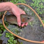 John caught several fish after lunch mostly on a midge larva pattern. It was his first fish where he caught me “off guard” which as you know is extremely hard to do. As John’s first catch of the day struggled in the net. John looked at me with what I can best describe as a look of shock and embarrassment. He said, “Kenny, I forgot my fish gloves in the car and I need them because I can’t touch fish!” At first I thought what the heck is he talking about. But he explained to me that even as a kid he couldn’t touch fish – something to do with the slime and feel of a live fish. Now I didn’t know what to do because I wanted a picture of him holding his “graduation” fish. Soon the shock/embarrassed look turned to a smile and I realized that I been HAD!!. Yes, we got that picture and several others. We did use other flies with some acting as attractors but the trout eventually took the smaller midge pattern. Others did well on the crackle back, wooly bugger, hare’s ear, midge patterns, soft hackle and more.