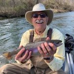 Our quick intelligence gathering at the Sowbug indicated that The Norfork Tailwaters might be the more interesting venue for our efforts that Saturday (3/26) morning. I brought my Flycraft (inflatable drift boat) along but upon arrival at the Norfork Dam we were thinking about wade fishing since the “scheduled” water release was minimal and many fishermen were out in the riverbed on foot and catching fish. However, as we were rigging up our rods, an Arkansas fish and game pickup truck pulled up and an officer approached. We were glad we had purchased non-resident permits and were preparing to dig them out of our wallets when the young man saw the Flycraft on my truck asked, “would you like a shuttle to the confluence?”. The confluence is where the Norfolk tailwaters (more accurately: The North Fork River which forms Norfork Lake) empties into the White River at Norfork, AR. The North Fork is four miles in length and we had intended to float it the next day, but with this invitation, and insight he provided about the fishing downstream beyond the waders, we decided to go for it. We quickly launched the Flycraft and Russ oared it out and fished solo while I took off for the confluence followed closely by the AR Fish and Game truck driven by our new buddy, fish biologist Ryan Gary. On the return trip to the put-in spot, I pumped Ryan for information about the area hatcheries, rivers and creeks. He knew a lot, of course, and was happy to share his knowledge. I even found out we were both alums of the same university — LSU in Baton Rouge, LA!