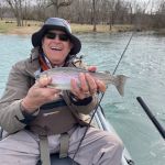 Ryan caught one at that spot, and their initial run was slow but later picked up.  AL and Steve Baker took off on a downriver float in AL’S Flycraft. This meant that DanStag had the whole stretch to himself (just like in your dreams). Picked up a few more fish on streamers, including Olive wooly buggers.