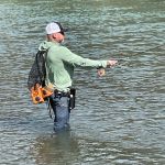 Both Ryan and Steve tried nymphing the riffles behind the cabin. This proved difficult, since the wind would often blow your indicator upstream or in Ryan’s case, prevented him from getting a solid euro nymph drift where he could sense the strikes. Heavier flies helped him a bit.  Even so, they were able to pickup a few fish.