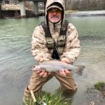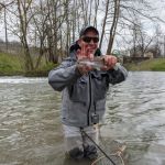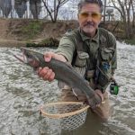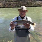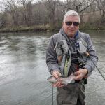 Thursday (March 25th) had heavy rain predicted all day. Turned out to lightly rain for a half hour or so, a few times throughout the day. Undaunted, our guys donned rain gear and tried out other nearby areas (instead of Dam 3) such as below Dam 1 which is right in downtown Mammoth Spring. Mike and Scott reported they did pretty well there wading and brought good fish to the net. Mike and Scott reported they thought this would make an excellent leisurely fish/float of about 3 miles before you’d need to get out at Cold Spring access. Next time we’ll do that float.