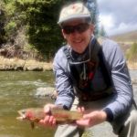 I just spent the last week vacationing in Steamboat Springs, and snuck in some fishing time too. I had a great day fishing the clear tailwaters of the Stagecoach Reservoir, and also put in a few hours fishing the Yampa River right in-town on a couple of other days, sometimes in the sunshine, sometimes in the freezing rain. Despite the “chocolate milk” color and high flows on the Yampa in-town, the fish we’re still there! Even my daughter, Alicia, got in on the act just before leaving on Friday!