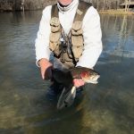 We all got suited up and ready to fish and were thankful that there were very few people at the park fishing. The temps were in the mid 20’s, the water level was up a bit and a little off color but I think that swung the advantage in our favor.