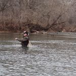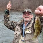 Saturday was a bit colder and we were a little slower getting up and about. Al had a friend come up from the Branson area to fish with him, and they fished the day in the park. Mike, Mike, Dave and Jeff headed to the lodge for breakfast to plan the days activities. Hai and Chris had brought a Kayak, so after fishing a little in the park in the morning, they decided to test their boating skills and head out to the river in the afternoon. They caught a few bluegill upstream from the spring…add one more to the variety of fish caught.