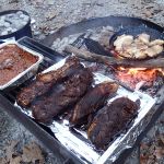 Back at camp on Sat evening was our community dinner where everybody brings something to share, and we eat until we can eat no more. Jeff brought the main dish, which appeared to be about 12 lbs, of venison backstraps(a campers tradition). Hai cooked up some pork-belly BBQ over the fire, Bisaga made what we now call “Bob’s Potatoes” in memory of our lost FATC camper Bob Chott. Also, beans, salads, wine and all kinds of other stuff provided by the others. This was by far, the biggest feast we have ever had. Did I mention, we always eat good on these trips.