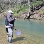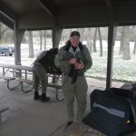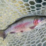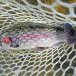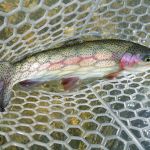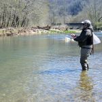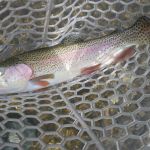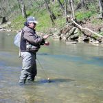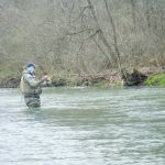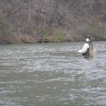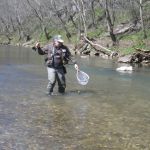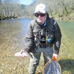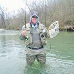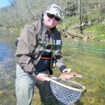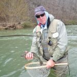 On Saturday, we woke to snow on the ground and temps in the 20’s. Four of us decided to press on to Roaring River State park as James, not one for the cold weather, bowed out of fishing for the day. We found out later in the evening that this would save our butts. It was very cold when we started our fishing day at Roaring river but warmed up nicely after lunch. We had the entire fly only area to ourselves. The water was slightly higher than normal which is good and the fish were loaded in this area. The water was fairly clear so it was suggested to “hunt” for the fish and only work areas where fish have been seen. This really paid off and lots of fish were caught (and lost). the top fly seemed to be “the son of san juan” or as the guys liked to call it “the son of Sam”. Tiny San Juan worms and midges seemed to be the ticket. It was a very successful day – even Bill said,”we need to fish here more often!” Easy Bill, it’s not always this good.