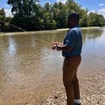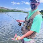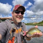 I had the opportunity to take two new fellas on the Little Pigeon River. One was a glorified casting session (no fish). However, the other was a half-day on the water with MANY bluegill and several smallmouth in the net! Chris said he was “hooked” and planned to go home and buy a fly rod! His poor wife is probably regretting letting me take him fishing!
