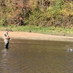We arrived at Pointe Royale, went to the golf clubhouse for a bathroom break 😉 – then headed to the water. The water was definitely low and slow, but we knew that before we left. When the water is off at LT it is usually the only time you can wade fish anywhere on the lake/river. But as always, the FATC knows of a few tricks to get to water that can be waded even with a one to two-generator flow. How do you find out what the generator flow will be or is —– yes, check our website!!