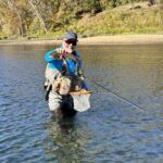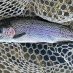With the water moving at 20cfs (predicted until 3-4pm) we decided that it would be best to try two different techniques – indicator fishing and swinging flies. These techniques worked fine as we caught fish throughout the day. Sometimes the fishing would be good for a period and then shut down for a while. Then it would it pickup again. I do have to say we missed a lot of fish with hit after hit until a rainbow would make a mistake and take the fly. The rainbows were feisty, and we had several breakoffs especially when using 6X tippet. But with the water so clear I truly feel that 6X tippet was needed. The top fly was the grey scud. LT is loaded with scuds but make sure you tie them small – no bigger than size 16 but an 18 would be even better. We had the opportunity to watch several trout (big trout) take our flies and then spit them out within nanoseconds. That’s what you must work with. So, you see any movement on your indicator – ANY movement – you set the hook. Remember it’s just a “quick” lift. And with the water moving only 20cfs (think about that as Montauk are normally 250cfs – 300cfs) use the smallest indicator that you can get away with.