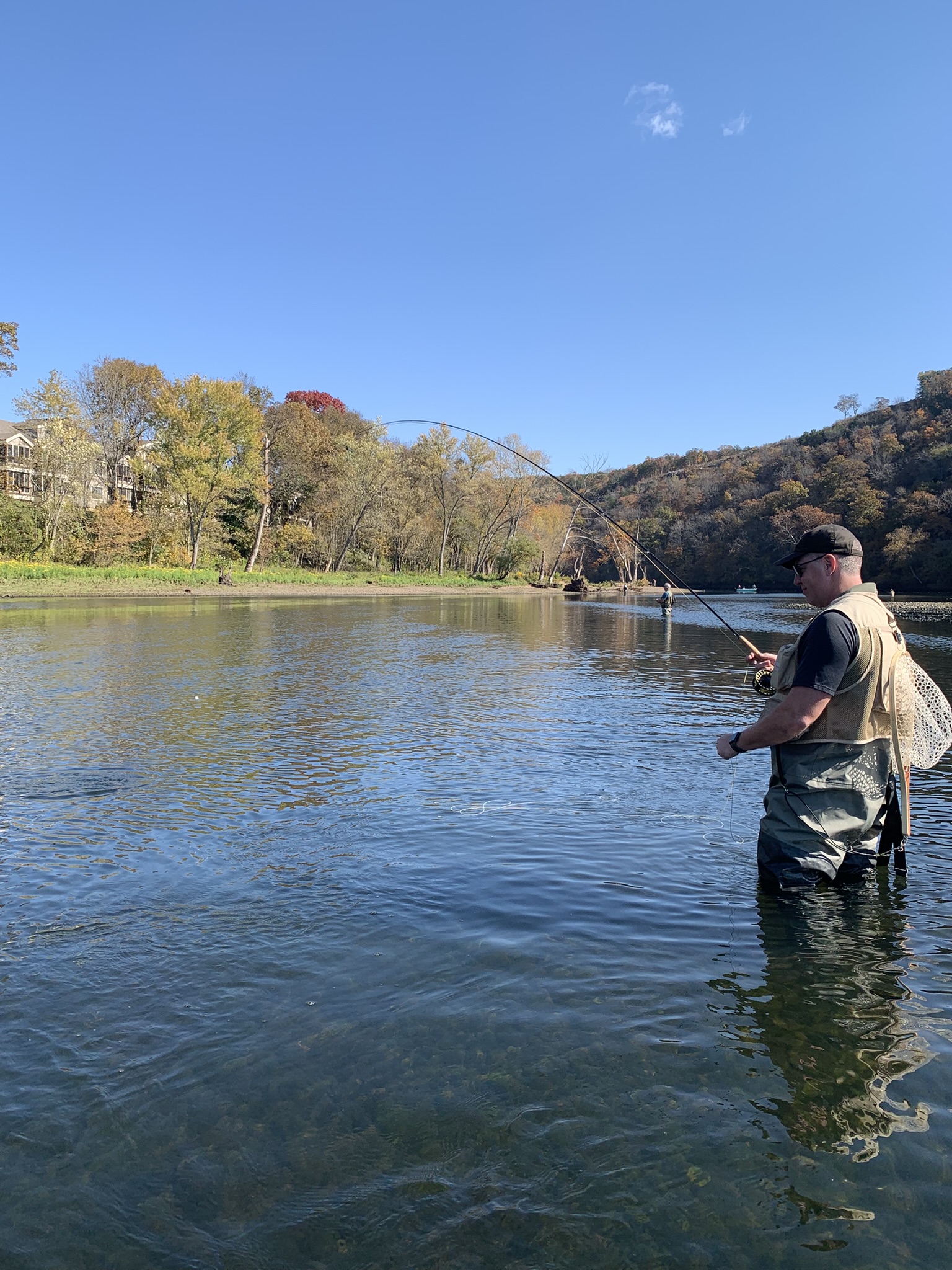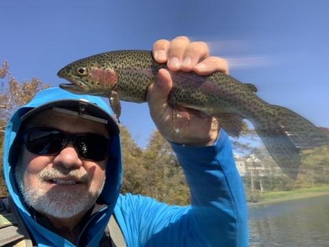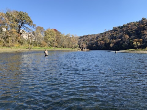 We arrived at Pointe Royale, went to the golf clubhouse for a bathroom break 😉 – then headed to the water. The water was definitely low and slow, but we knew that before we left. When the water is off at LT it is usually the only time you can wade fish anywhere on the lake/river. But as always, the FATC knows of a few tricks to get to water that can be waded even with a one to two-generator flow. How do you find out what the generator flow will be or is —– yes, check our website!!