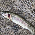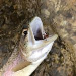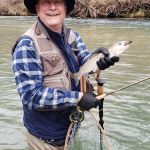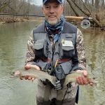 We were pleased to find we had the park almost to ourselves. Tim and Sid started fishing down by the lodge. The rest of us started at various points along the fly-fishing only area. FATC fly fishers were the first ones to the river. Jim started fishing with Vernon and Vernon had his first fish on before Jim could get into the water. Soon everyone was catching fish. Not much wasn’t working. Some guys were spey casting, some Czech nymphing, some stripping woolybuggers, some swinging soft hackles, and some dead drifting various nymphs and midges. They all worked.