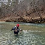 Lunch was full of fish stories. Everyone agreed the morning was a success, except that the weather forecast for a mild day with a high in the high 40s was not happening. Despite the chill, everyone was eager to get back in the river while the fish were so agreeable. But, where was Alex? He never showed for lunch at the agreed upon time a place. This could be good news or bad news….