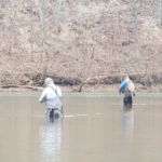 So here is our theory – the flood hit Maramec Spring Park hard too, almost as bad as Montauk State Park. Picnic tables traveled down the river (see pictures) and mud was everywhere in the park. The spring is full so the water in the park is high and murky. Tons of fish have escaped the hatchery and traveled downstream. Something will be different! So, we took Al’s advise and wanted to check it out for the FATC. Our plan was to fish outside the park all the way to dry creek. Then turn around and head back to the park (we did not fish in the park). We entered the river at our usual spot (call me if you are not familiar) and started to fish our way up the “bend” where the park waters enter the Meramec River. It so it began!!