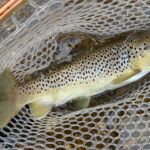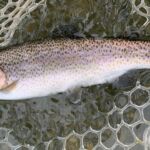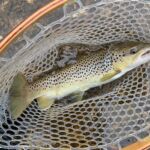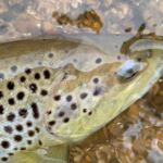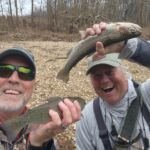 Most of the fish we caught were rainbows with a few browns. The rainbows were not big, anywhere from 10 – 14 inches. I did catch an 18 ½” Brown and Charlie got a nice 16“ Brown (see the pictures). We also had a couple nice smallmouth bass. We checked the water temperatures which sat right at 55 degrees. What does that mean? That is right in the middle of the trout’s best metabolism range for – feeding! And feed they did!