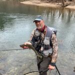 I believe if you catch a fish on your first cast that it is bad luck, and you will have a tough day of fishing. Well, that theory is out the window! Each of our first casts produced fish, and our second casts, and our third casts, and so on. We decided to use streamers per Al “Scout” Harper’s advice from his trip report. I used an olive mohair leech as did Jim and Charlie used a special brown wooly bugger that he tied himself. We didn’t change flies until after lunch. Upstream from the bend, at the bend and downstream from the bend was – ON FIRE!! We fished to about perpendicular to the Conservation cabin and then took the gravel road to just upstream from Dry Creek. We fished up to Dry Creek, had lunch and rested our forearms.