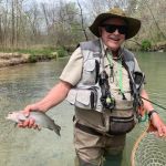 As always, we learn new things on every trip. If you think you know it all you will quickly find out that you don’t. In fly fishing you can and should learn new things every time out. A few lessons – (and I learned this one that last time I was out) if you don’t have a wading staff – get one – a good one. I highly recommend the Folstaf but I hear the company shut down but there should be some still out there in fly shops. If you can’t find that brand then get a good, strong one. Make sure you have your gear organized on your vest and know where each item is located. It helps the “fumbling around” on the water. Keep your flies dry if they get wet by using a hair dryer on them when you get home that night – don’t wait until the next day or later. Could be too late – if rust sets in.