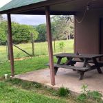 The quarter mile gravel road from Hwy 19 to the place was recently graded and in good shape despite heavy rains in the area. A gate made of cattle fencing was propped open wide. Twin ancient Catawba trees had just lost their white buds which covered the freshly cut lawn, a Mulberry bush in the front yard was heavy with berries and a rose bush at the gate served as a nice greeting. A two-person swing that would be probably best support only one large FATC member at a time and a couple of plastic upright chairs rested on a small porch. These things stood out on the exterior of the cabin/farmhouse as FATC members Steve Baker and I, Al Harper, arrived 6/1/22 for an overnight. It’s a scant 2.25 miles from this structure to Montauk Spring. That’s close enough to dart back for a lunch or quick siesta if one is desired.