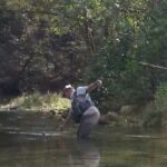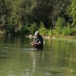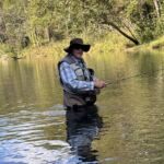 I eventually met up with Bob Palish and Bill Grelle about 150 yards upstream of the powerline. I was fishing a dry-dropper rig and started catching fish. The surface activity picked up, and the fish were rising. Bill and Bob P. were also doing well with topwater flies and netting fish.