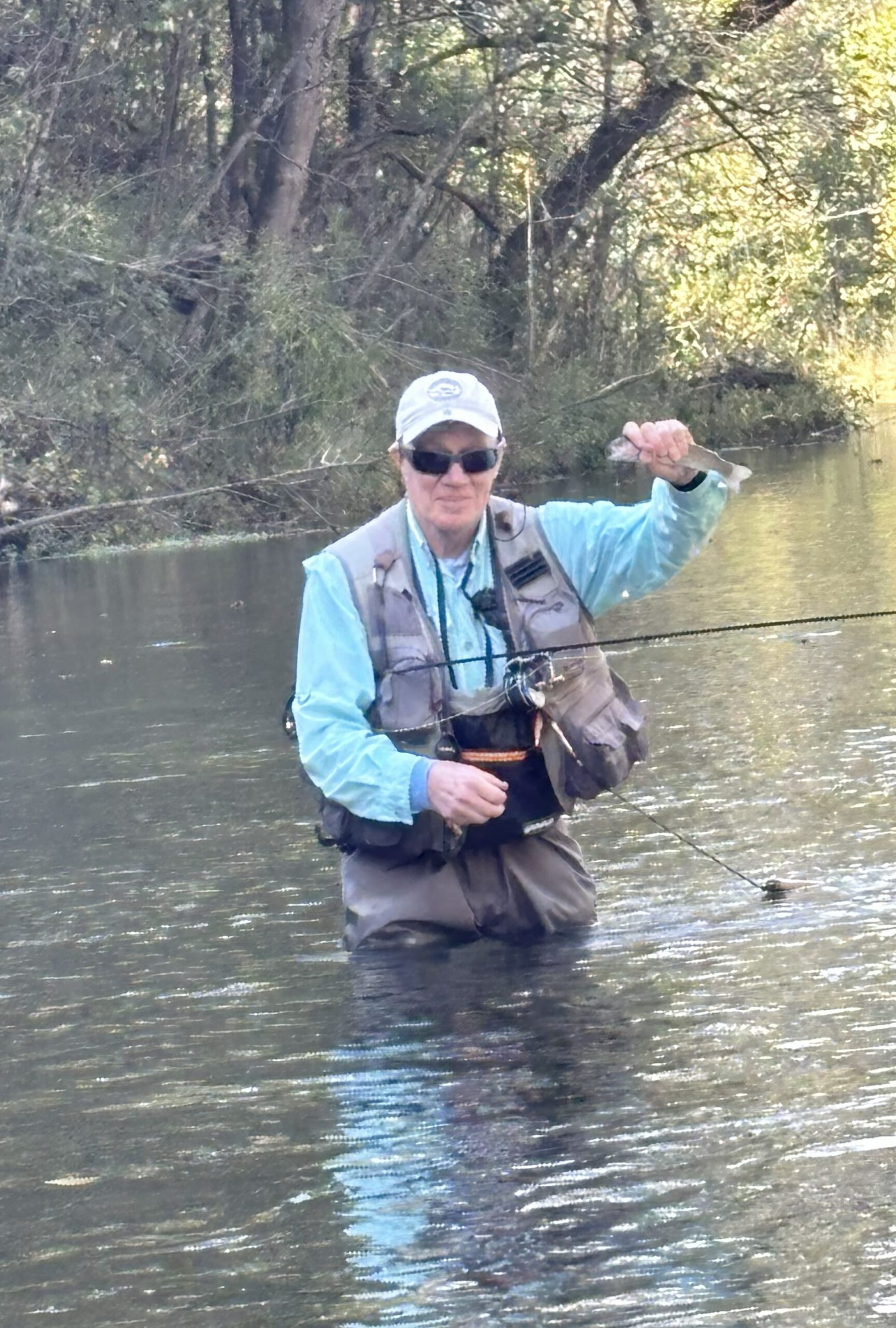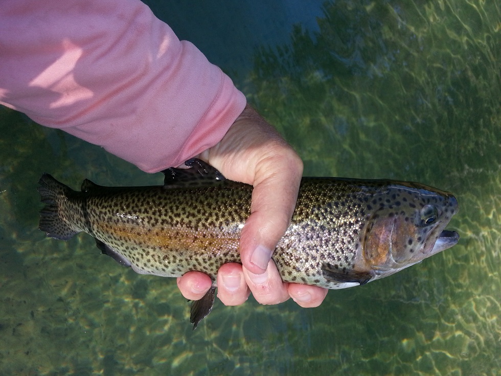 That stuck with me. I was tempted to try something different, but stayed with what had been successful in the morning. A dry-dropper, I was not disappointed and continued to find success in the afternoon.Steve Baker reported doing well with a soft hackle, and Don Varner had luck on the cerise worm. The hot fly of the day seemed to be the red zebra midge. The tan headlight caddis, Soft hackle, or something similar, was working well on the top. I think just about everyone had a double-digit day.