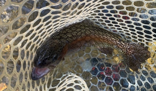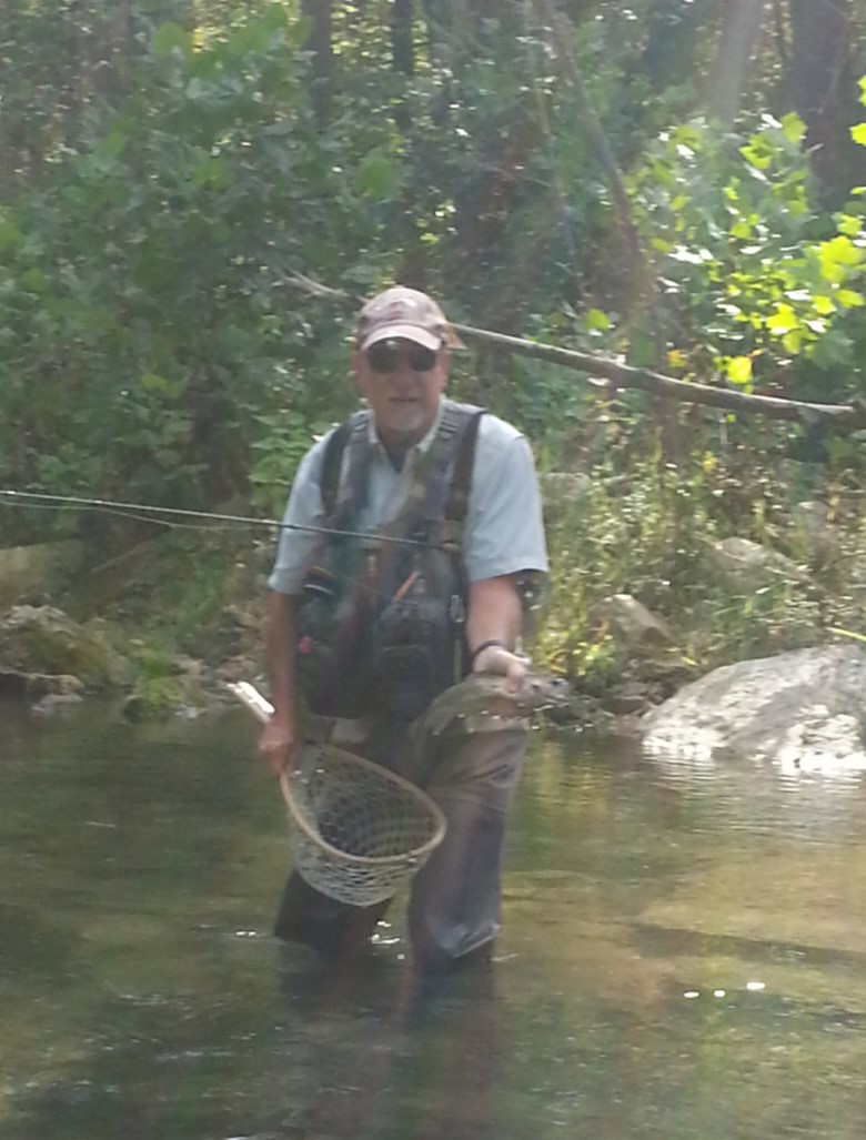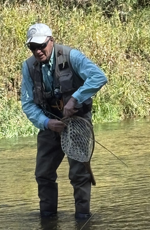 I eventually met up with Bob Palish and Bill Grelle about 150 yards upstream of the powerline. I was fishing a dry-dropper rig and started catching fish. The surface activity picked up, and the fish were rising. Bill and Bob P. were also doing well with topwater flies and netting fish.