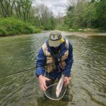 We had six members welcome Bob Heath and Randy Stephens from Springfield to the FATC. Kenny Klimes and Jim Craig would take the guys through their graduation day while Bob Hassett, Vernon Preston, Don Varner, and Bob Palisch wished them luck. As usual the new “grads” started their adventure below the boulder where they had the opportunity to cast, strip streamers, swing soft hackles and do a little dead drifting techniques before lunch. I understand that Randy caught a fish on his first cast – oooo bad omen. But he recovered from that during the rest of the day. Bob on the other hand decided to wait until after lunch to do his catching.