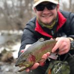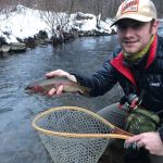 Tyler Pierce and River Laski fished the South Fork of the Holston river in Smyth County, VA. on December 11th. It was 35 degrees and 8 inches of snow with the water well above normal flow (do you think that would stop these young guys?) They were running jig style stone flies deep and slow.