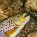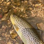 So, yes there is a Brown-Town. But let’s go over a few things to make your trip to Brown-Town enjoyable. The water temperatures are at 60 degrees – Ideal! You need to use small flies – don’t be afraid. Size 16-20s would be good. Be stealthy when moving in the water. Throw your flies “upstream” – remember the trout look upstream so they won’t see you when you’re downstream from them. And most important of all is to have FUN.