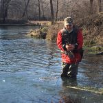 The warmer temps triggered a large midge hatch through most of the day. In some spots, it was hard to breath without inhaling a a mouthful. However, even with all the activity, there was very little surface feeding going on. The fish were staying down. Not until late in the day, when Oldani hooked into about a 19″ with a Griffiths Gnat.