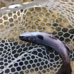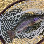I knew it was there for the taking, so this morning I hit my favorite spot on the Watauga. It was stocked on April 1, and the river had lots of fish. The first one in the net was the Brookie, so I was stoked. Next were several rainbows and after about an hour of fishing, I got the brown. I also got another Brookie but could not get another brown for the double trifecta. Maybe next time. The Crane fly larva was all they were taking today in brown, grey and black. I tried several others flies like a hares ear, soft hackles, dry flies and cracklebacks, but the mop was all they wanted. I finished the morning with a 16” rainbow right in front of two App State students who had their mouths wide open. Hee hee. All in all, one of the best days I have ever had up here and that is saying something.