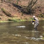 The second day of catch and release started out a little colder with temperatures around 30* but the wind wasn’t as strong. Vernon and I (Steve) met up with Glenn Haake and Bob Moore at the naturalist cabin. Vernon and I headed to the boulder with plans to meet for lunch at noon. Fishing started out slow but then picked up about 9:30. Steve put 4 fish in the net and Vernon hooked into one before heading up to the top of Walter’s stretch. Steve was able to net a couple more before lunch. Midges and soft hackles and nymphs were the flies that were working. After lunch we went upstream to the end of the cut bank and we each netted a couple of more fish. The stream was starting to get more crowded, and Vernon and I decided to call it a day at 2:30 and head home.