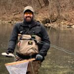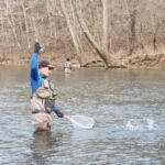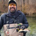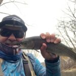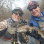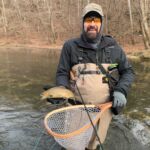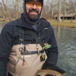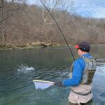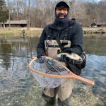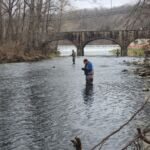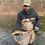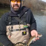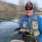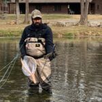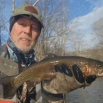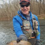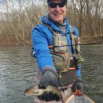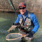 The weather was predicted to be in the high forties (in the afternoon), but it sure seemed colder than that as the humidity made it a bit chilly in the morning. It was a cloudy day, so we didn’t have the sun to warm us up. But each of us said each time we caught a fish it got a little warmer. Funny how that happens! Jim started out with Rick Miller and Kenny took Scott Morris for the morning period. Both did exceptionally well, and all caught several fish before the lunchtime. We worked on their casting, stripping techniques, swinging flies and of course dead drifting nymphs. The others spread out on the river anywhere from the spring down to the dam to past the bridge.