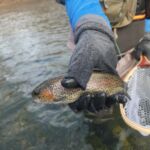 At lunch most had smiles on their faces as we discussed which flies did well and what areas were good fishing. The best flies varied as olive mohair leeches and woolly buggers did the best for streamer fishing. Several went to swinging smaller flies like soft hackles and the like and were rewarded with some nice fish. The nymphs used were House of Payne, black zebra midges, Hair of the Dog (like a Walt’s worm pattern), San Juan worms, and egg patterns. All flies did well as we found the fish hungry and ready to fight. One of the best parts was that no one fell in either!! Another plug to wear the proper clothing under your waders and vests – NO COTTON! With the low temperatures now, hypothermia can set in quickly if you are wearing the wrong gear.