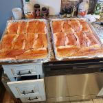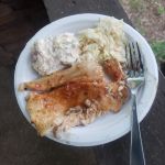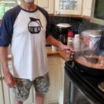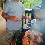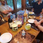 John Muckerman fed us some yummy meals. We feasted on grilled trout. John’s secret recipe: remove excess moisture, oil skin side, sprinkle meat side with McCormick Smokehouse Maple seasoning, brush on maple syrup. Let sit for 15 minutes. Grill with skin side down only (don’t flip) at medium-high with the grill closed. Use a spatula to separate the meat leaving the skin behind on the grill to scrape off. Serve warm trout ASAP. In his “Big Bertha” iron skillet, John also made a fantastic scrambled egg dish with sausage, potatoes, etc. When John Muckerman goes into the kitchen, everybody ends up full!